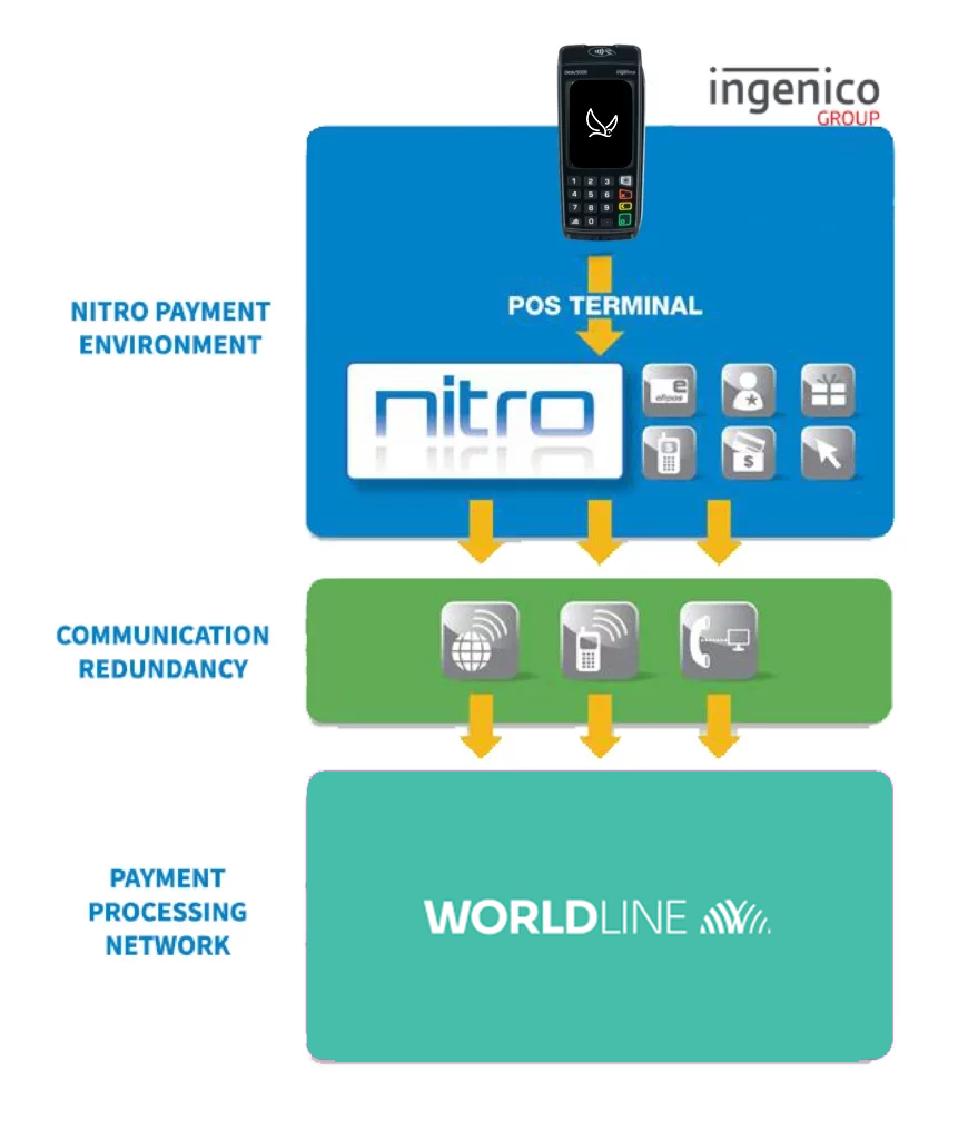 Skyzer Nitro is made up of two main components. The first is a POS resident software component that resides on the Point of Sale, and the second being a set of libraries located within the Eftpos terminal application that allows dialogue between the terminal and the Point of Sale system.
